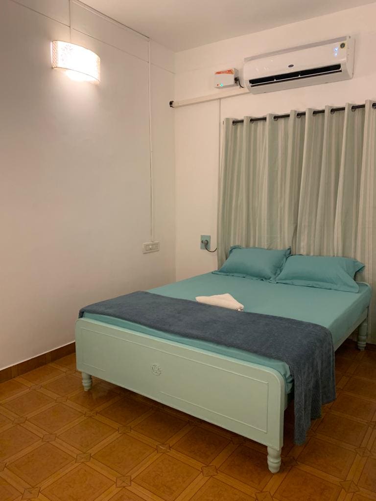 Kick back and relax in this calm, stylish space. it's a single room villa with car park and private lawn area and compound wall for your safety and privacy enjoy the green environment just 1km from ecr .4km from rock beach 24hours power backup. we provide projector to increase your entertainment on big screen, ro water.easily accessible for beach and white town. most preferable for couples with kid. (only gents not allowed )two adults two kids allowed. (smoking not allowed inside the room)(