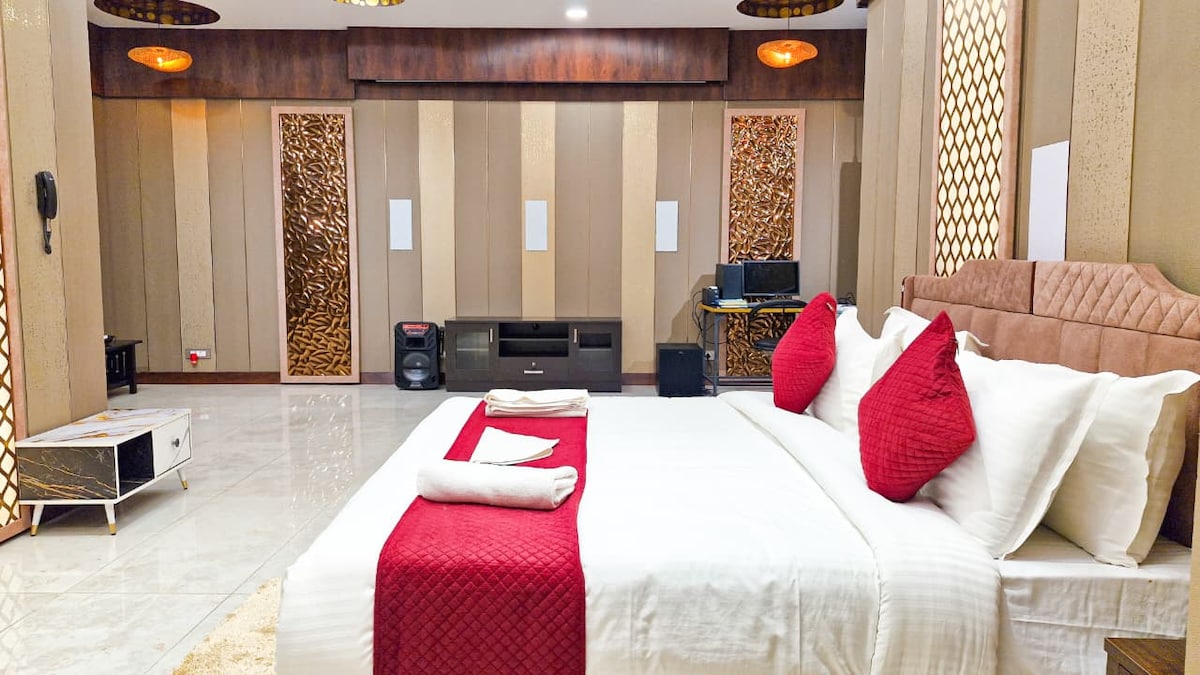 🌈The listing is for a cozy bedroom🛌 with a queen size bed and an attached bath with a couple sized bathtub 🛁 and all amenities for your comfortable stay 😍. The washrooms are designed on the lines of Balinese architecture🛖 to make you feel like you're in Bali🇮🇩 You can lay back on your bed and watch your favourite series📺and take a nice hot relaxing bubble bath🛀 with a glass of your fav drink🥂 and truly fall into that holiday state of mind..! 🥳