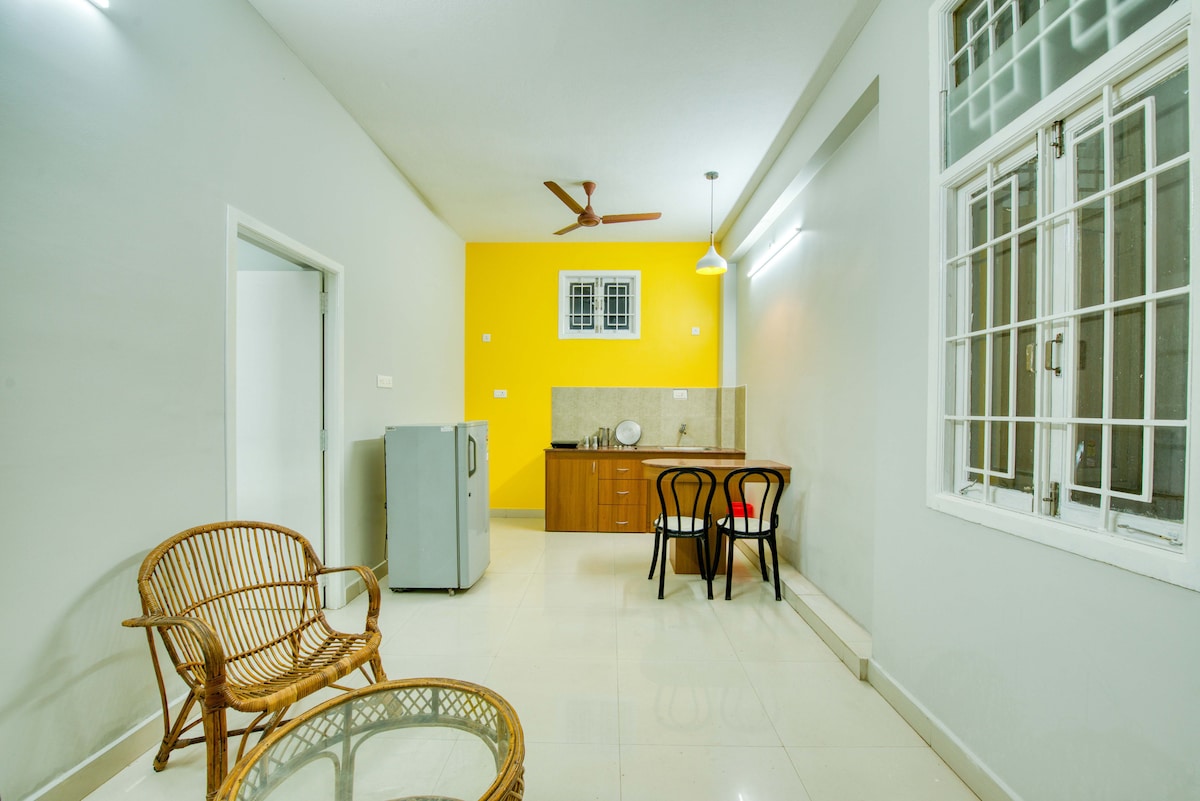 1 small bedroom simple and clean flats in the heart of Pondicherry .Each apartment has a kitchen with basic utensils,fridge and induction stove, air conditioned rooms, Bathrooms have shower and running hot water, TV and free wifi. Beach, good restaurants and coffee shops, shopping areas and tourists spots of Pondicherry are all at a walk-able distance. Best suited for families. Peaceful and quite place to return to after a long day of sightseeing and shopping.