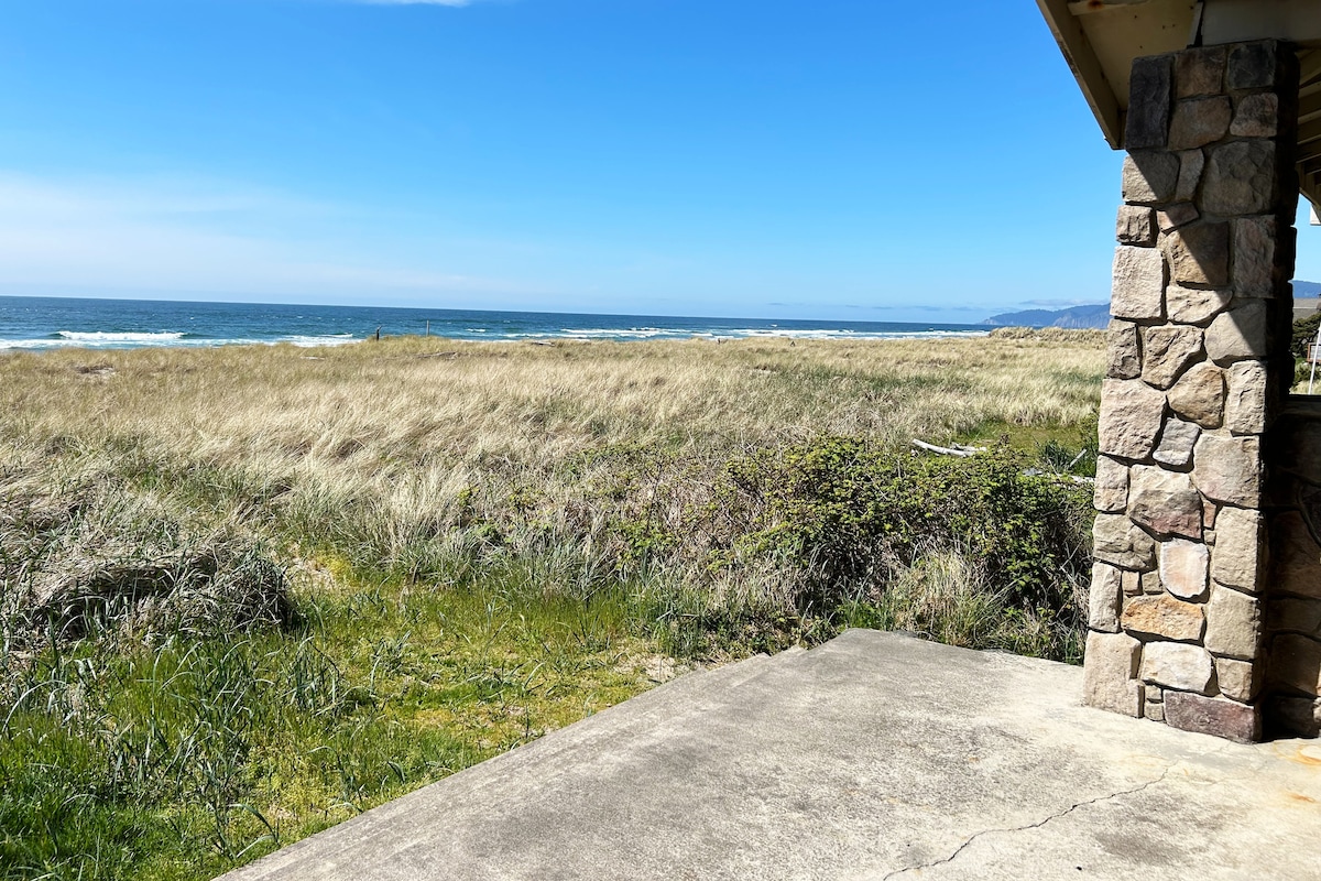 Oceanfront views from every window and the hot tub make for a gorgeous NW beach getaway any time of the year! The Gullymonster is a classic Oregon coast cabin built in 1976 and lovingly refreshed as a pet friendly retreat for families, couples, & friends. A spacious beachfront deck is ideal for sunny days and floor to ceiling windows make for cozy indoor wave watching whatever the season. Beach access is next to the cabin down a sandy path through sweet smelling dune grasses and native salal.