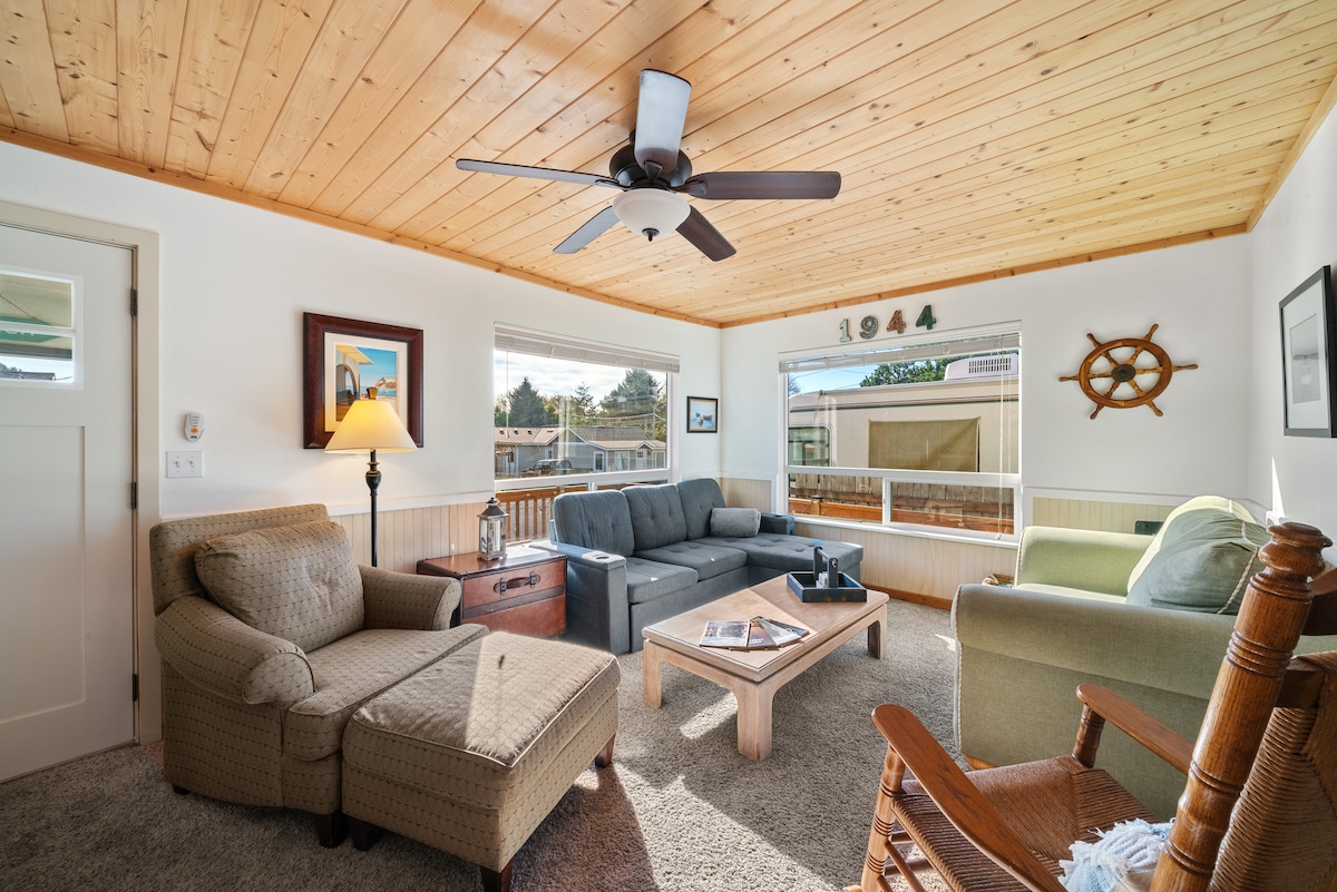 Escape to this cozy cabin, blending relaxation and fun—just a 4-minute, easy walk (less than two blocks) to the beach. Enjoy a large TV, electric fireplace, full kitchen, and thoughtful extras like coffee and laundry detergent. The spacious yard is perfect for grilling on the gas BBQ or lawn games. For beach days, grab the wagon with sand toys, blanket, chairs, and towels. Whether you’re unwinding indoors with a game or soaking up the sunshine outside, this retreat has it all!