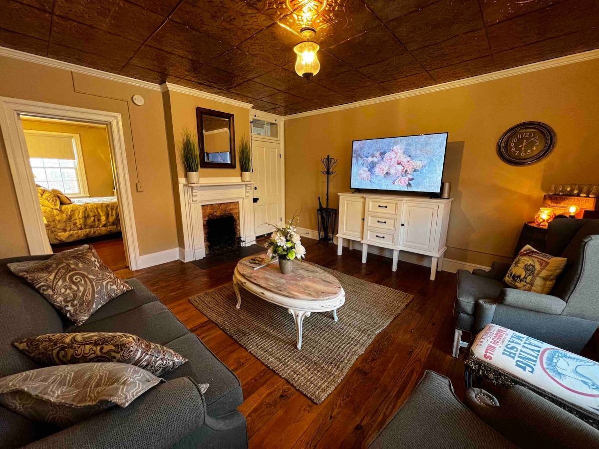 Welcome to our charming pet-friendly Irish farmhouse, set on three picturesque acres just outside Lexington. This 500-square-foot retreat features a clawfoot tub, propane fire pit, and screened-in porch with mountain views. Enjoy the cozy feel of a tiny home with plenty of space for a memorable stay. You’ll enjoy the perfect mix of country relaxation and easy access to downtown Lexington. Whether relaxing on the porch or dining on Main Street, the farmhouse offers the best of both worlds.