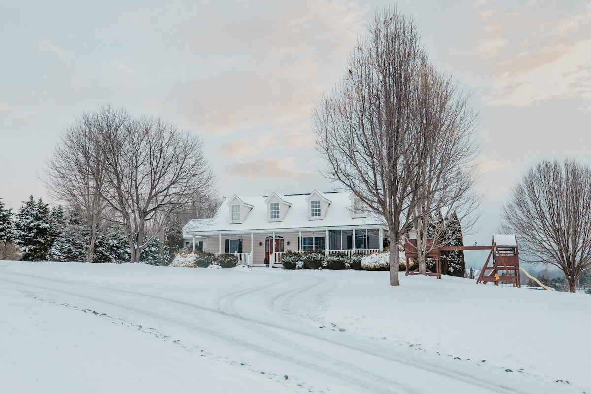 Winter Special!! Free night how? Message me! Winding Creek Cabin, a tranquil Shenandoah Valley retreat designed for couples, where rustic elegance meets serenity in a private yet accessible setting. Surrounded by stunning pastures, scenic farmland, and the gentle sounds of a babbling brook, this haven invites you to unwind and rejuvenate. Start your day with coffee on the front porch Swing. Relax in the hot tub, outdoor TV sip your favorite beverage by the New FirePit 🔥. Heated tile floor