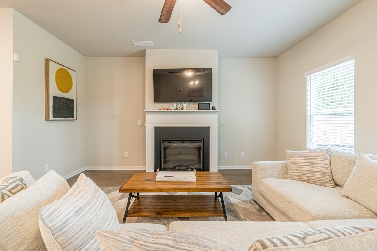 Modern farmhouse themed townhome for up to 8 guests! Conveniently located near downtown Conyers, Rockdale Hospital, the Georgia Int Horse Park and a short drive to Mystic Falls! Ideal for traveling nurses & families, you'll enjoy relaxing in the spacious living room and open kitchen/dining area with all cooking essentials! Enjoy a great night of sleep in one of the 3 guest bedrooms each equipped with Roku smart TV's! Complimentary wifi and parking! Don't miss out on an amazing stay, book today!