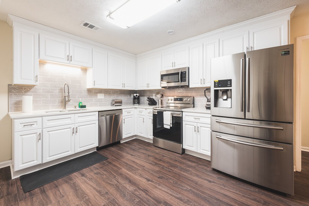 Enjoy a new (2022 build) and clean 1,556 square foot townhouse. Peaceful neighborhood, safe (ADT Security), free parking (2 vehicles), fully stocked and equipped kitchen, 1 gb high speed internet, 3 smart TVs, barbecue grill, water filter (alkaline remineralization-clean/pure/healthy drinking water) and TrueAir filter. Features 3 bedrooms, 2.5 baths, walk in closet, washer & dryer, stove/oven/microwave oven, and dishwasher. Only 13 minutes drive to stone mountain park, & seaquest aquarium.