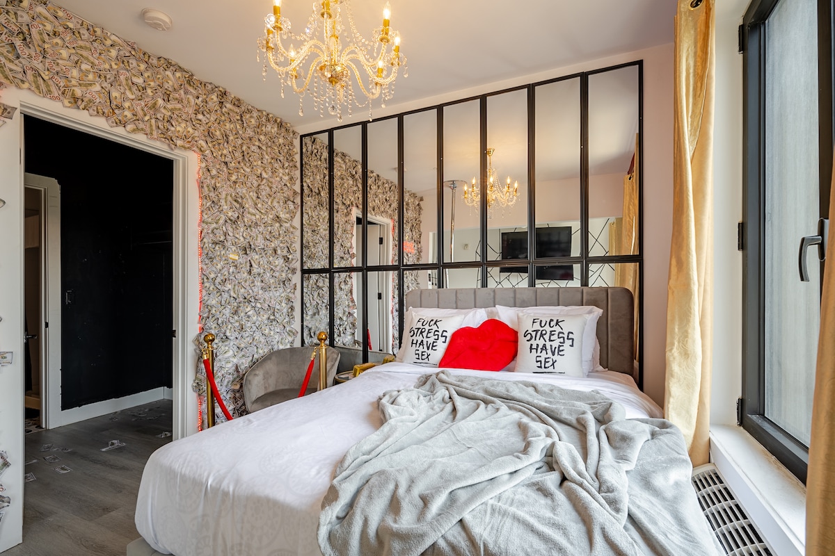 This unique place has a style all its own. We just know you're going to love your stay at our Luxe Glass house 3 .Get a good nights rest on our Queen mattress. Walk into a custom mirror background including a beautiful crystal chandelier in the bedroom with plenty of fun!! . Full of entertainment, money wall , exotic dance pole & secret glow room !!! This room is not for children under 18