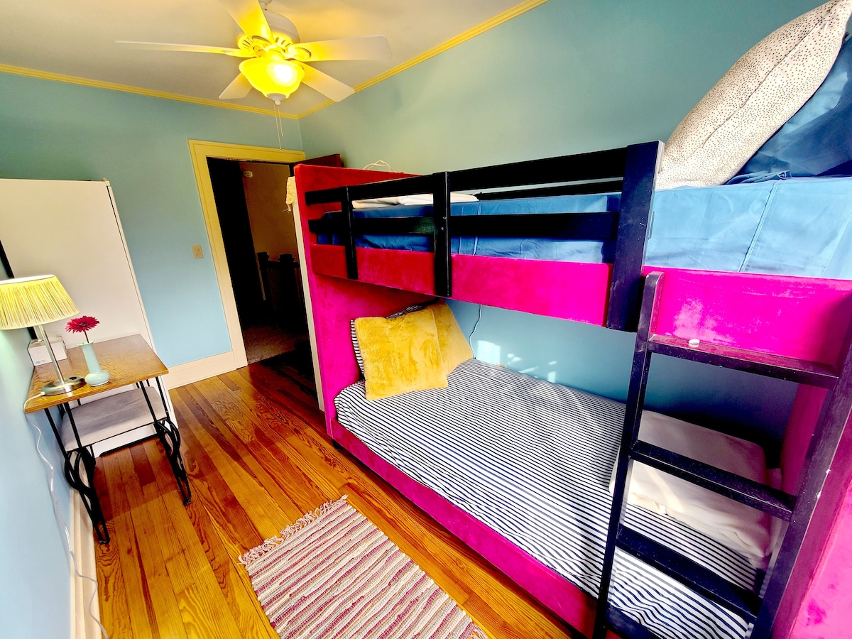 Excited to offer this space to travelers! We have fun with some color. Queen bed in the first bedroom, XL twin beds in the back bedroom. Great location! Close to stylish, revitalized downtown Rockford with terrific restaurants, night life, shops, and galleries. Upper unit in vintage 4 family with long term tenants below and I live in the other upper. Absolutely no parties. Only registered guests. No smoking inside or outside on the property. Violation results in $500 cleaning fee/poor review