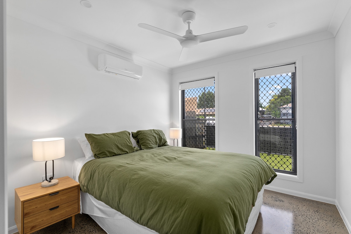 Modern airconditioned studio apartment with Queen bed and extra double mattress sofa bed made up on request. Short walk to beautiful local beaches, free lagoon pool and great restaurants 15 mins walk away and cute coffee shop + fish’nchips in Cooee bay. Off street undercover parking, Smart TV, WIFI, private bathroom and self contained kitchenette with new appliances. Access to laundry and back garden with BBQ . Pet and child friendly. Large elevated front deck.