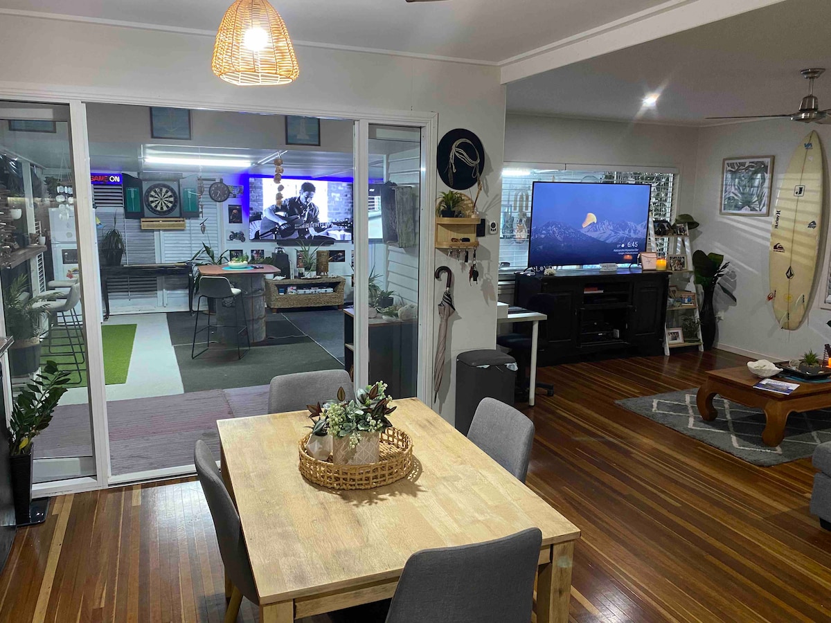 Hurry work men and Families kick back in this stylish, cozy retreat! Enjoy a 80" TV with Netflix & Stan, beer fridge, and 4 queen bedrooms. 2 bathrooms one with a bath. Relax on the lovely back patio with herbs & spices for cooking. Amenities include washer & dryer, coffee machine, water filter, blender, BBQ, and more HUGE yard perfect for dogs + 6FT fence, patio seating, small gym, and double lock-up garage. Comfort, convenience, home-like charm await you cleaning service available!