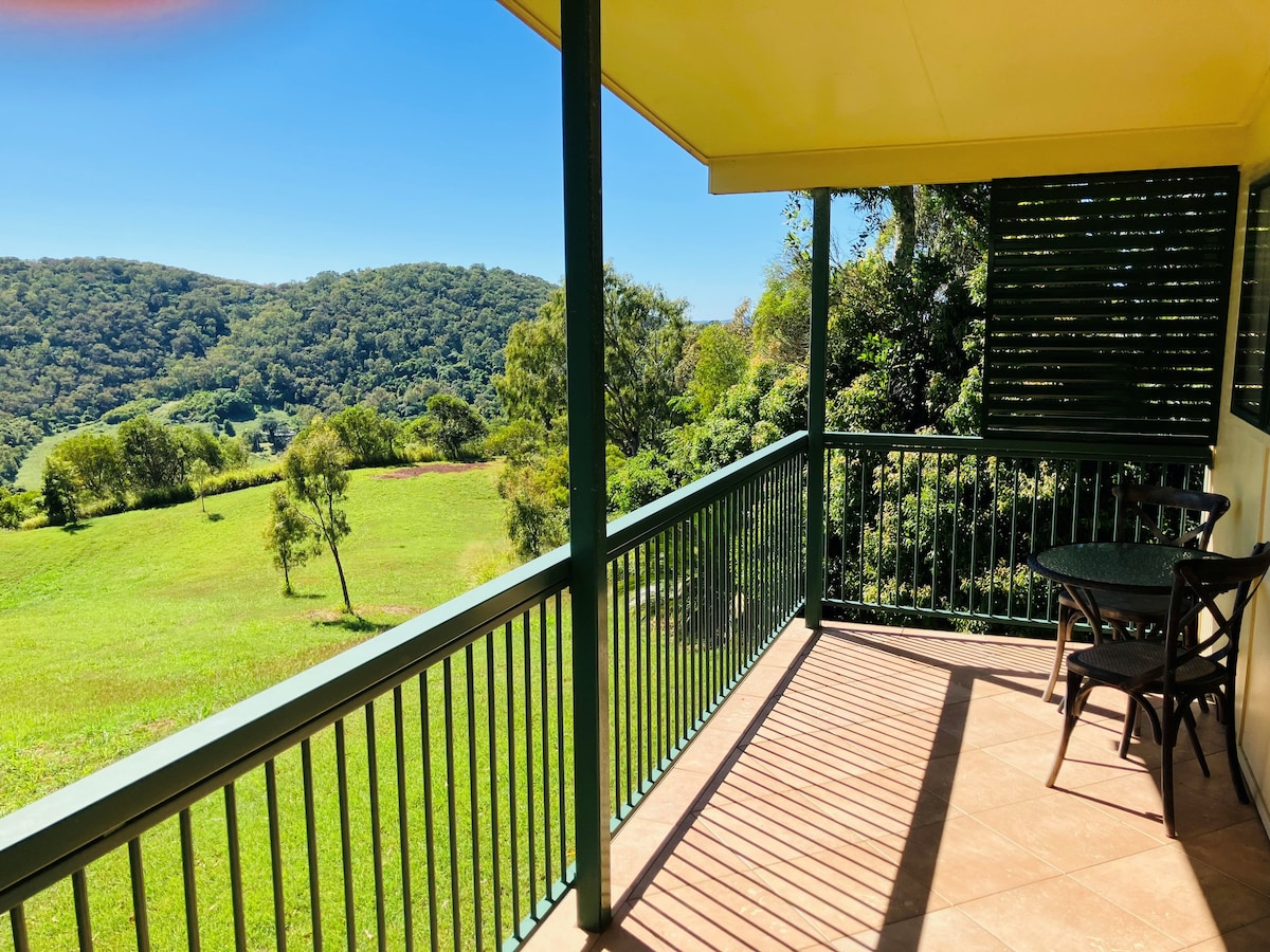 Beautiful stand alone unit, can sleep up to four adult guests, 1 x queen 2 x single, ability to sleep more (travel cot and high chair available) claw foot bath, kitchen, lounge, wifi and tv. Outdoor area, acess to fire pit, bbq and pizza oven. Kids play area. Ample parking. Set in 170 acres of bushland, chickens, ducks, guinea fowl and stacks of native animals and plants. On the highway halfway between Gladstone and Rockhampton, ideal stop for a restful night or days exploring.