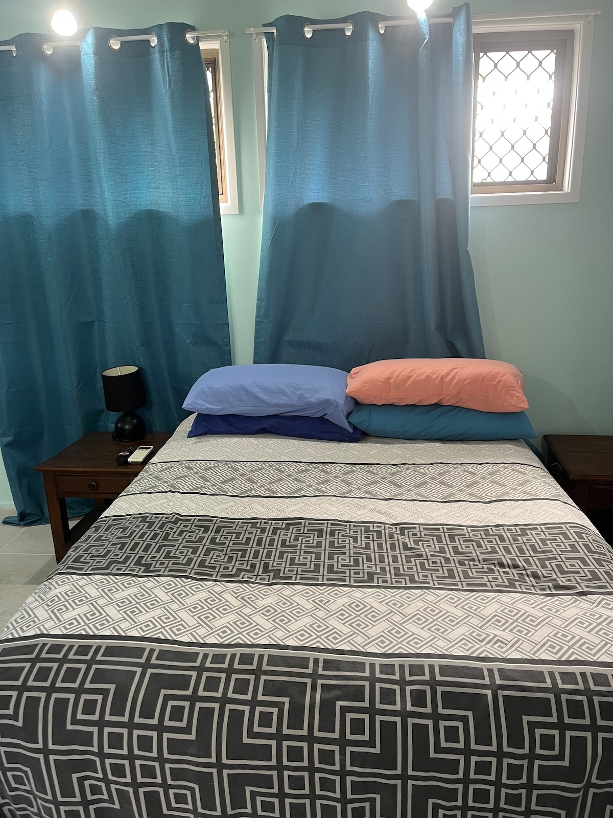Fully Self-Contained Unit. Full kitchen and your own bathroom. Suitable for couples or individuals. Sleeps 2 but there is space for a cot or a foam mattress on the floor. Please advise if you require a mattress on the floor. Photos show the entire space as it is, 100% accurate. Google television with Netflix etc There are 2 bus stops nearby Washing Machine is $5 for a 1 night stay.