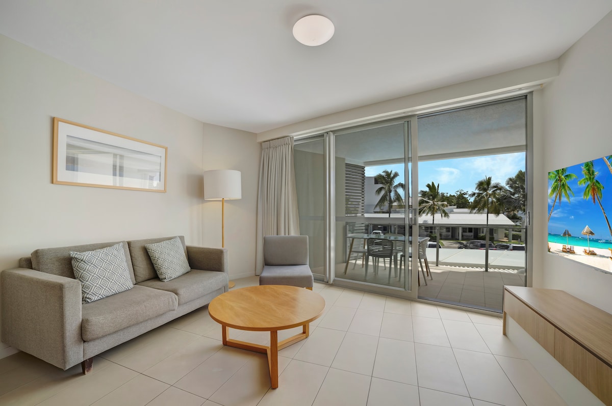 Perfect for guests wanting to stay on the Foreshore of Yeppoon. These modern north-facing 1 Bedroom Apartments feature a large balcony with ocean views, fully equipped kitchenette, laundry with washing machine and dryer, air-conditioning, flat screen TV including complimentary Foxtel and free Wi-Fi and parking. Please note this apartment is serviced weekly.