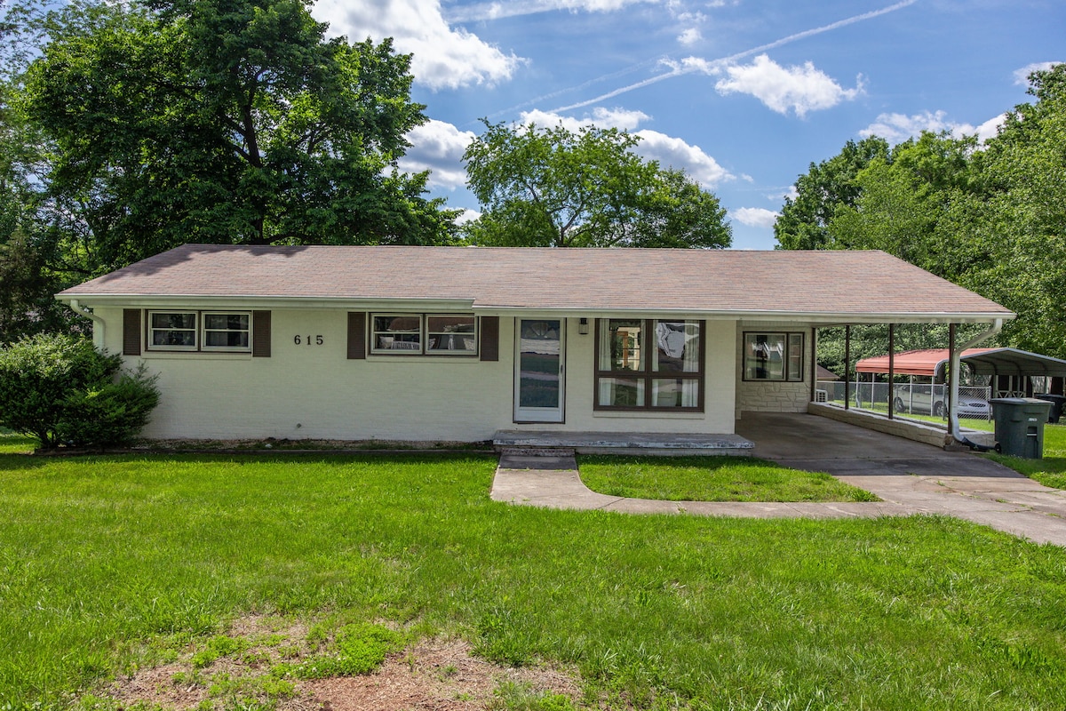 3BR/3BA ranch on 10 wooded acres sleeps 6. Open kitchen/living/dining area perfect for groups. Deck and patio for outdoor dining. Plenty of space to explore and roam freely. Cozy firepit for evening relaxation under the stars. Private and peaceful setting but close enough to town. Great for families or friend groups wanting space to spread out and enjoy nature. Three full bathrooms mean no morning wait times. Solid base for your getaway