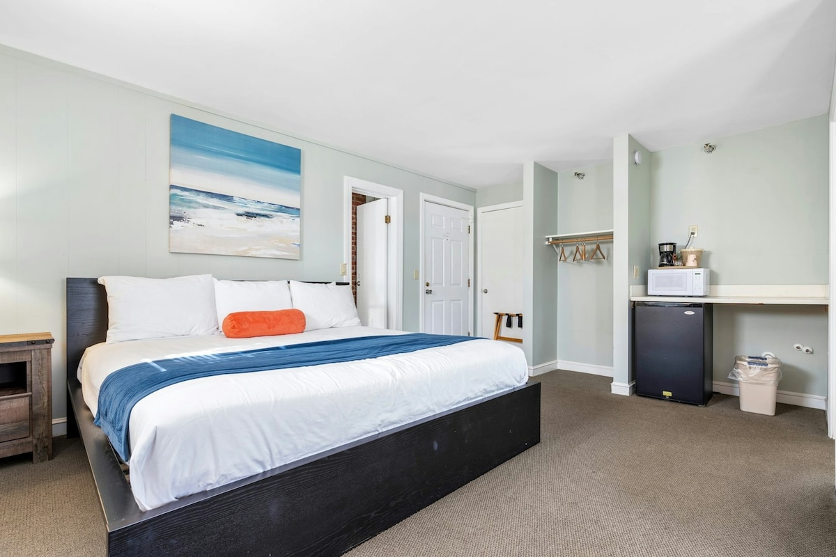 Located just steps from the pristine sandy Hampton Beach, this cozy yet spacious studio suite is the perfect destination for a relaxing and rejuvenating vacation. Our attention to detail extends beyond the suite's interior. The amenities include a comfortable queen-sized bed, a Keurig Coffee machine, HD TV, and off-street parking offering a comfortable and relaxing retreat for individuals, couples, or small families. Individual making the booking must be 25 or older <——