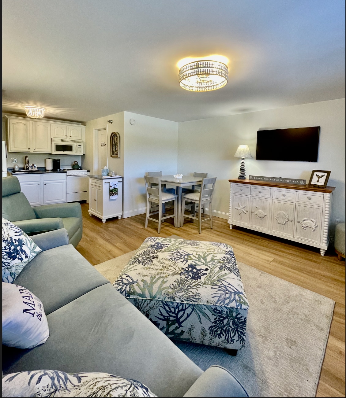 NEW! Newly refurbished, beautiful, spacious studio-condo! Walkable to all things loved in Ogunquit! Restaurants, Theater, Shops, Ice-cream! Take a sunrise/sunset stroll along Ogunquit's glorious Marginal Way! Trolley is a block away and The Ogunquit Playhouse across the street! Indoor/outdoor Pools (seasonal). Fully equipped kitchen. Free Wi-Fi. Queen bed. Bike rack. Clean and Stocked, including thoughtful extra's, makes your stay easy.