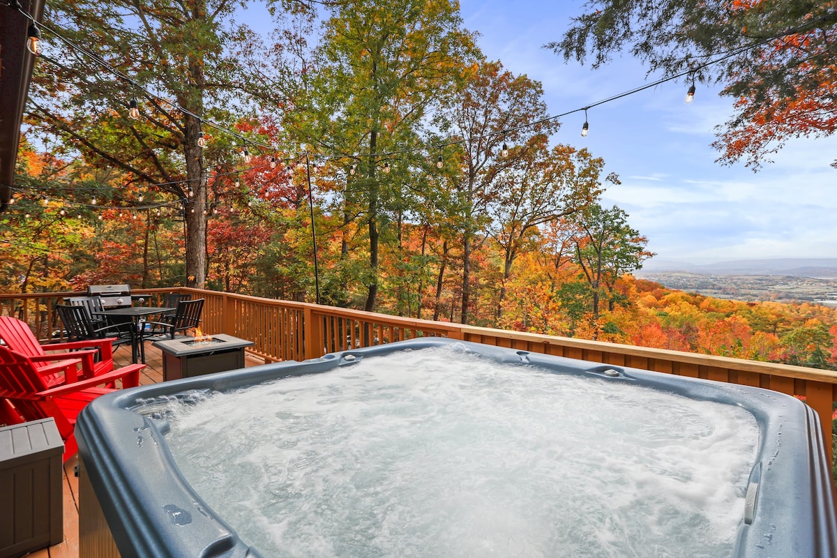 Mountain top retreat in New Market VA (close to Luray)! Enjoy breath taking views from the newly renovated kitchen/livingroom or the expansive deck with hot tub, Adirondack chairs, fire pit, and eating area. Cozy up by the gas fireplace and 55 inch smart TV. Kingsize bed in the main bedroom, full over queen bunk in the second. Perfect for a romantic or family getaway. High speed internet! Less than 30 min to Luray Caverns, Skyline Drive, and great hiking. 4WD NECESSARY to get to property
