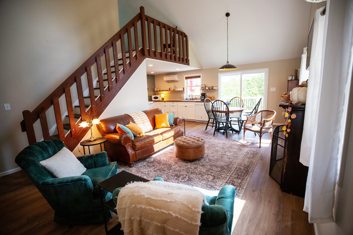Raven Ridge Retreat sits amidst our Granny Smith & Gala Apple Trees at Showalter's Orchard, home of Old Hill Cidery. This light-filled, recently-constructed cottage highlights extraordinary views of The Massanutten and the Blue Ridge Mountains, the Shenandoah Valley, rows and rows of apple trees, and abundant wildlife. This two-story, romantic farm stay is base for all your area adventures like hiking in Shenandoah National Park or exploring The Shenandoah Spirits Trail.