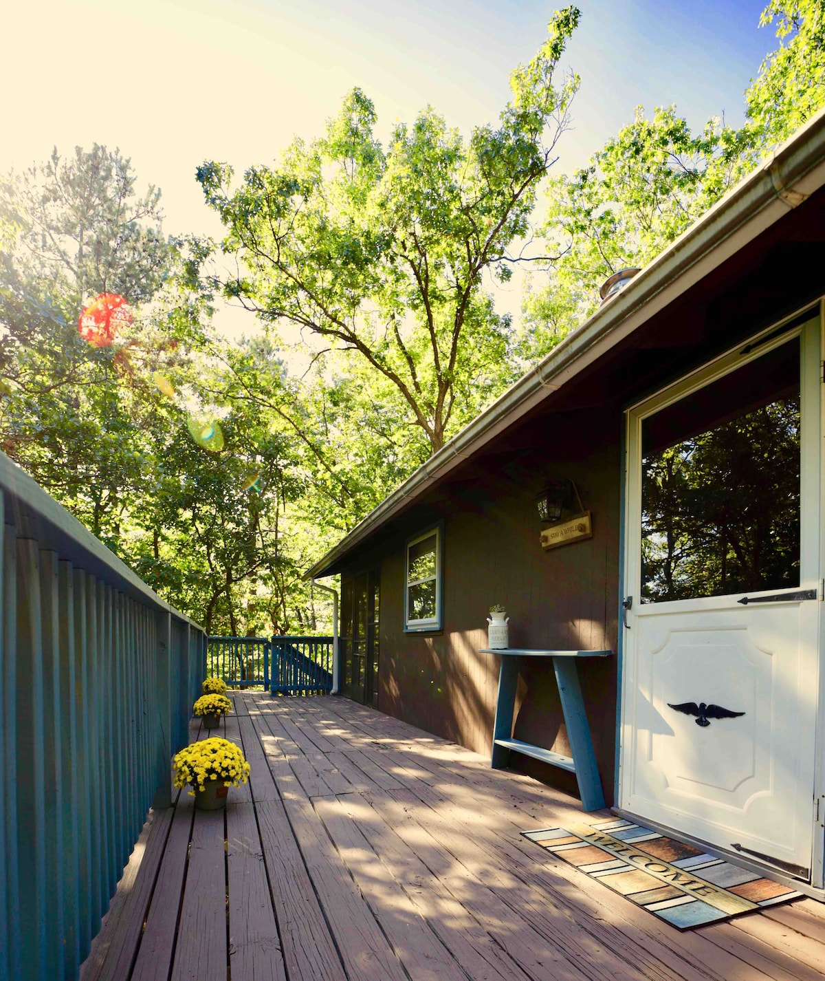 The Tortoise and the Bear B&B: Where Relaxation Meets Adventure Features: - 6-person premium saltwater hot tub - 1 Gbps fiber internet for seamless remote work/streaming - Two bedrooms with Sleep Number dual-side queen beds - Fully stocked kitchen - Multiple outdoor dining/seating areas Location: - 10-minute walk to Lake Laura with a 3-mile path - 5-minute drive to Bryce mountain skiing, biking, and golf Our home features a spiral staircase which may not be suitable for very young children