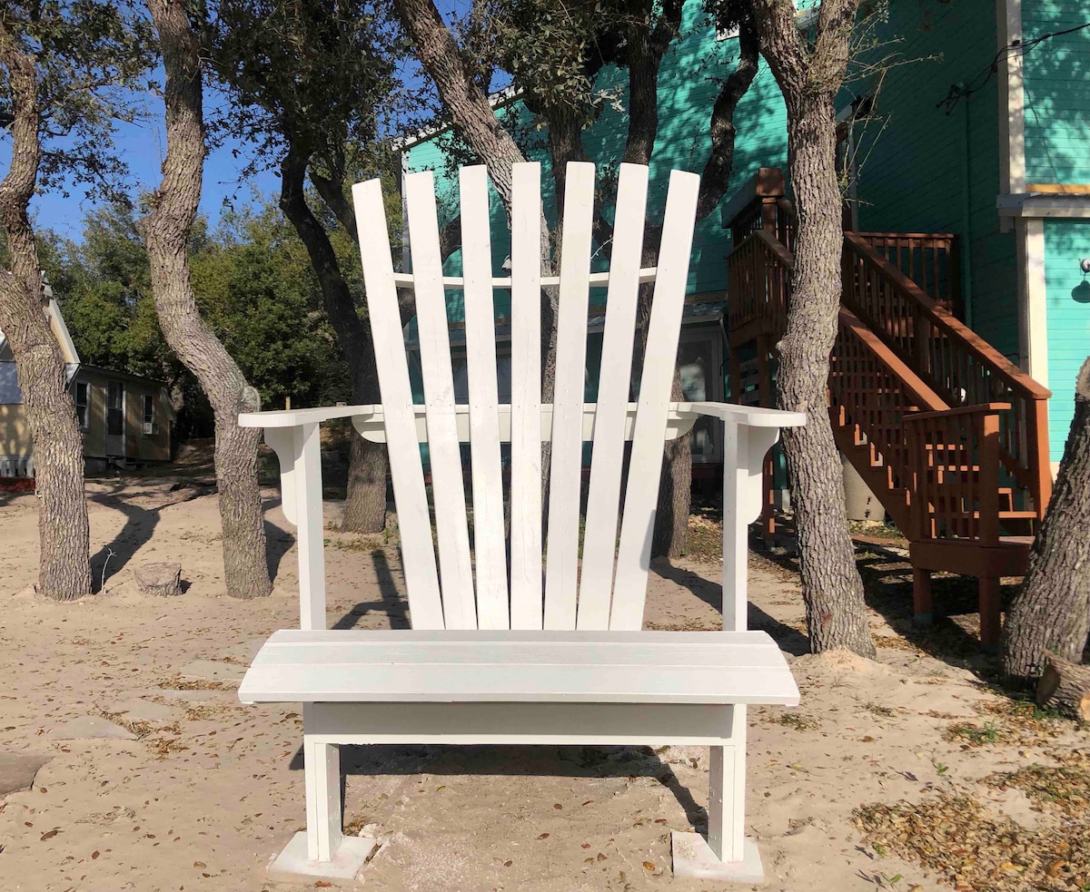 Plenty of natural light in this one bedroom studio well appointed with two queen-sized memory foam mattresses and hotel quality bedding. The closest Airbnb to the Rockport beach (Rated best beach in Texas!) with a peek of the bay from the balcony. Relaxing and quiet inside and around the corner from historic downtown Rockport, with boutiques, museums, shell shops and bars. Beach chairs, awnings, cornhole, beach toys, bocce and ladder golf available to borrow.