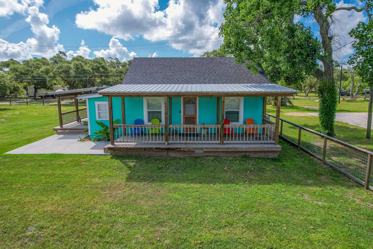 Pristine 240 sq ft cottage, available for 2 people to stay, in beautiful Lamar. 10 min from the beach, shops & galleries of Rockport. This cozy, super clean cottage has 1 Bedroom/1 Bath, a small refresh nook (no kitchen), gas grill,a decked porch with a fire pit, perfect for kicking back & soak'n in the wildlife of Lamar. Less than a mile to 3 boat docks. Walking, Birding & Fishing is the common entertainment of this beautiful coastal neighborhood. Due to asthma, no type of animal is allowed.