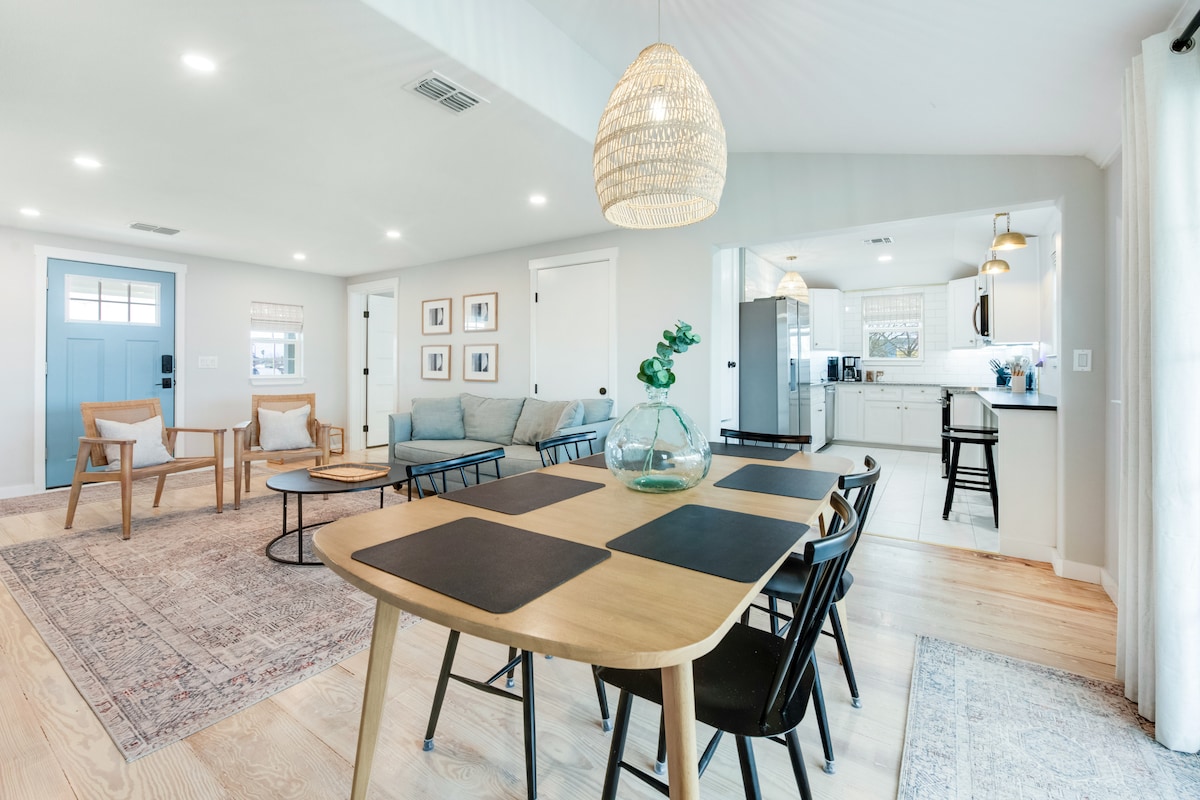 Welcome to your coast house! Walk to the water in sunny downtown Rockport. Cute modern casita with high end furnishings. 2 bedroom 2 bath house with additional twin day bed. 3 blocks walk to the water with slight water views from the back porch. Walking distance -5 blocks to coffee shops, restaurants, art galleries, wine bars & a short 1.4 mile walk to the Rockport beach. Perfect quiet getaway in the adjacent neighborhood to downtown, so you are close to all the fun, but peace and quiet at home.