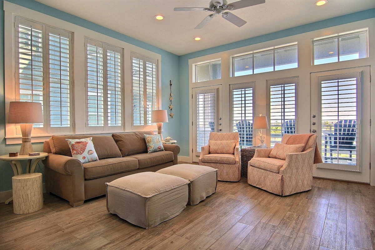 Escape to Isla Blanca - the ultimate coastal retreat located in Bahia Bay. The spacious living area is perfect for unwinding after a day at the beach, with plush furnishings and smart TVs for entertainment. The fully equipped kitchen features modern appliances and ample counter space, making meal preparation a breeze. Relax on the covered deck after exploring nearby attractions, including fishing charters, hanging out at the beach or kayaking with the kayaks that are provided with your stay.