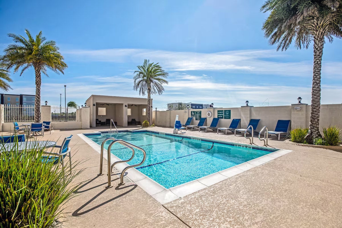 Located near North Shore beaches and the Texas State Aquarium, La Quinta Corpus Christi – Portland offers a relaxing stay close to the coast. This king room features a plush bed, microwave, mini-fridge, and scenic views of the area. Guests enjoy a free breakfast, outdoor pool, and convenient access to Corpus Christi attractions.