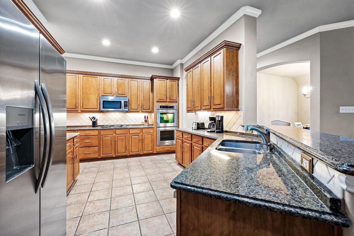 Welcome to our spacious, luxurios 2-story home near Dallas! Perfect for families, groups, or business travelers, it offers 4 bedrooms—two master suites with king beds, a queen bedroom, and a kids' room with twin beds. Enjoy two living rooms, a patio with scenic views, exercise equipment, and a washer and dryer. Discover trails, a play area, pool, tennis, and basketball courts a minute’s walk away. Close to shops, restaurants, and attractions, it’s ideal for work or leisure. Enjoy your stay!