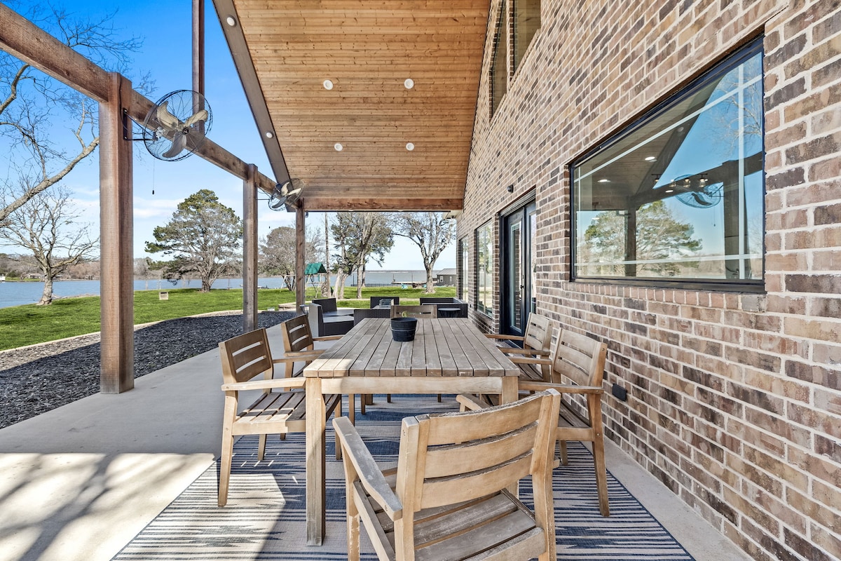Lake Tawakoni is waiting! Claim your front row seat at Bluewater Bungalow, a lakefront vacation rental home with a distinctive "bohemian farmhouse" design that would be at home in Southern Living magazine. Highlights: remodeled in 2018 with vaulted ceilings and custom kitchen, lake views galore, hundreds of feet of private shoreline, large and private backyard (including your own fishing pier!), fire pit for s'mores, and a covered outdoor living/dining area for BBQs and spectacular sunsets.