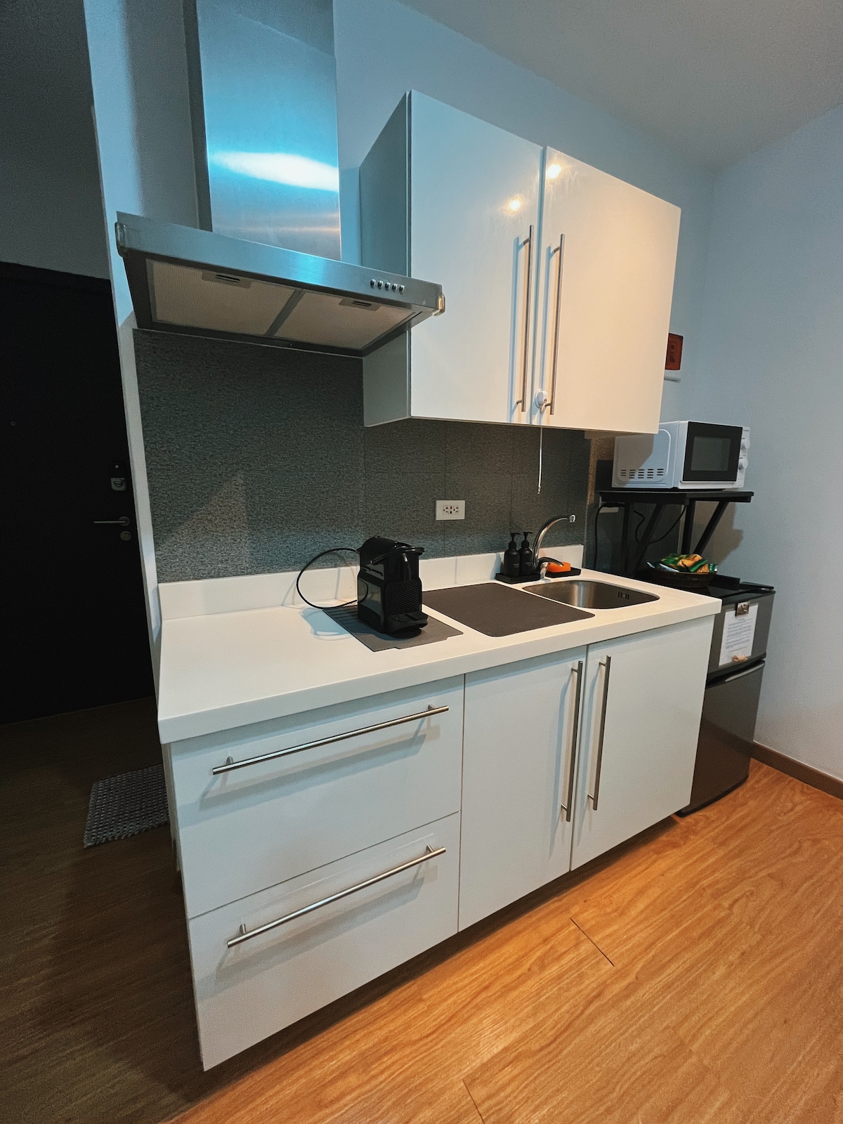 ** Available to book for 6 months or longer at special long term rate ** The 25 sq. meter small compact studio apartment is perfect for a single traveler or a couple. It’s adjacent to the Powerplant mall, located in one of the most upscale, secure and exclusive neighborhoods in central Makati, 10 minutes to the business district and 30 minutes to the airport. This exclusive community has it's own luxury mall with a supermarket literally steps away and plenty of restos and shops.