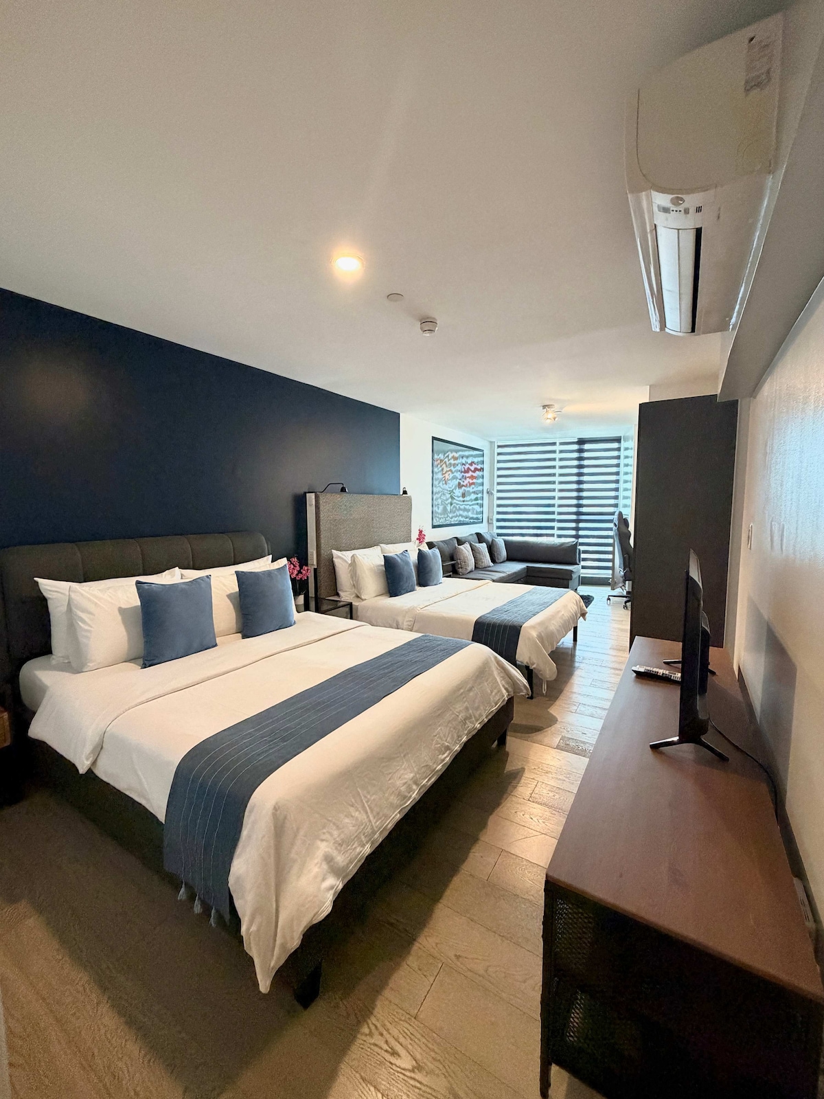 The most incredible 2-bedroom suite in the Milano Residences with a magnificent view of the city! Ultra private patio with a private plunge pool! (We empty and clean the pool for each booking!) Enjoy fast internet / Netflix while comfortably experiencing the vast space (100SQM) this unit has to offer. The downstairs other shared pool and sauna is available Tuesday to Sunday, 7AM to 7PM. The pool will be closed during cleaning day (Monday)