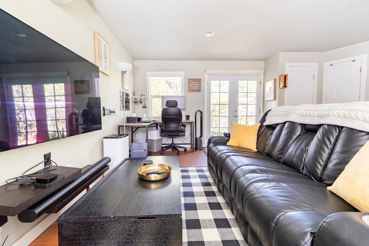 Set in a tranquil garden surrounded by cherry and apple trees planted in 1952, the Yellow Cottage is a chic retreat where modern luxury meets Portland charm. Enjoy cinematic nights on a 65" 4K TV with Sonos Dolby Atmos, a Super Nintendo, seamless smart-home tech, and blazing-fast fiber internet. Indulge in spa-like heated floors, a Japanese Toto toilet, eco-luxury linens, and plush Nectar hybrid mattress. Private entry, garden patio, fire pit, BBQ, full kitchen, and curated local touches await.