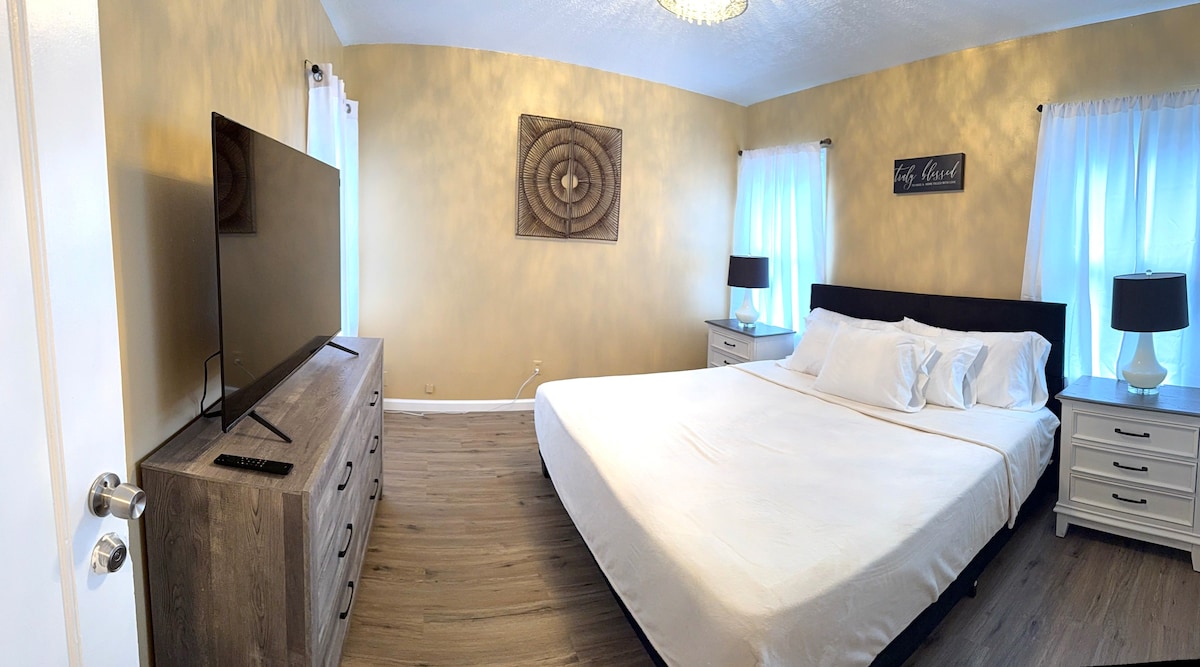 Welcome to your home away from home — a cozy, modern 2-bedroom retreat designed for comfort and relaxation. Whether you’re visiting for work, family, or a peaceful getaway, this charming house has everything you need to feel at ease. Step inside and enjoy a bright, open space with stylish décor, a fully equipped kitchen, and a relaxing living area — perfect for morning coffee or movie nights. Both bedrooms feature comfortable beds & fresh linens.