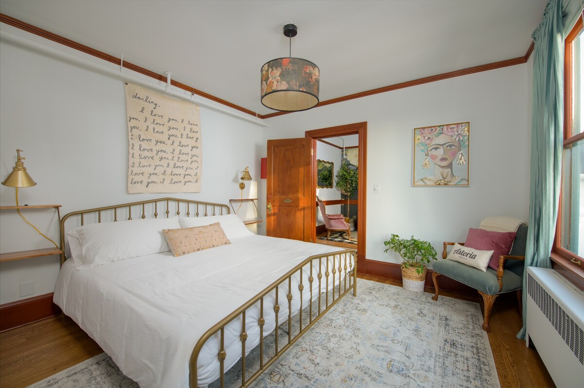 Enjoy your romantic two-room suite with its own entrance at the newly-restored Rosebriar Mansion! 🛏️🛁☕️ Enjoy a king size bed, full bathroom with tub, private sitting room w/ small fold down sofa. Equipped with K-cup coffee maker, fridge w/freezer, microwave, toaster, dishware & more! Historic Trivia: This suite was home to Mother Superior during the property's time as a convent! NOTE: The space is ideal for a couple or parents with small children; *not recommended* for more than 2 adults