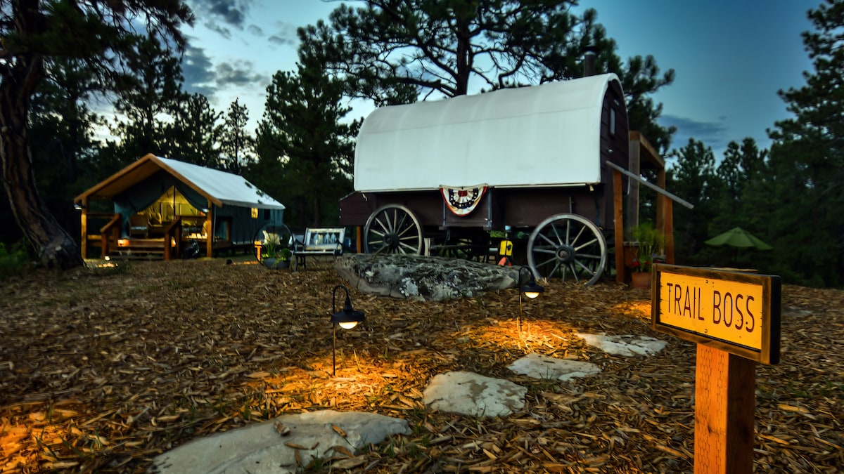 独一无二的蒙特祖马绵羊营,坐落在树林中。
