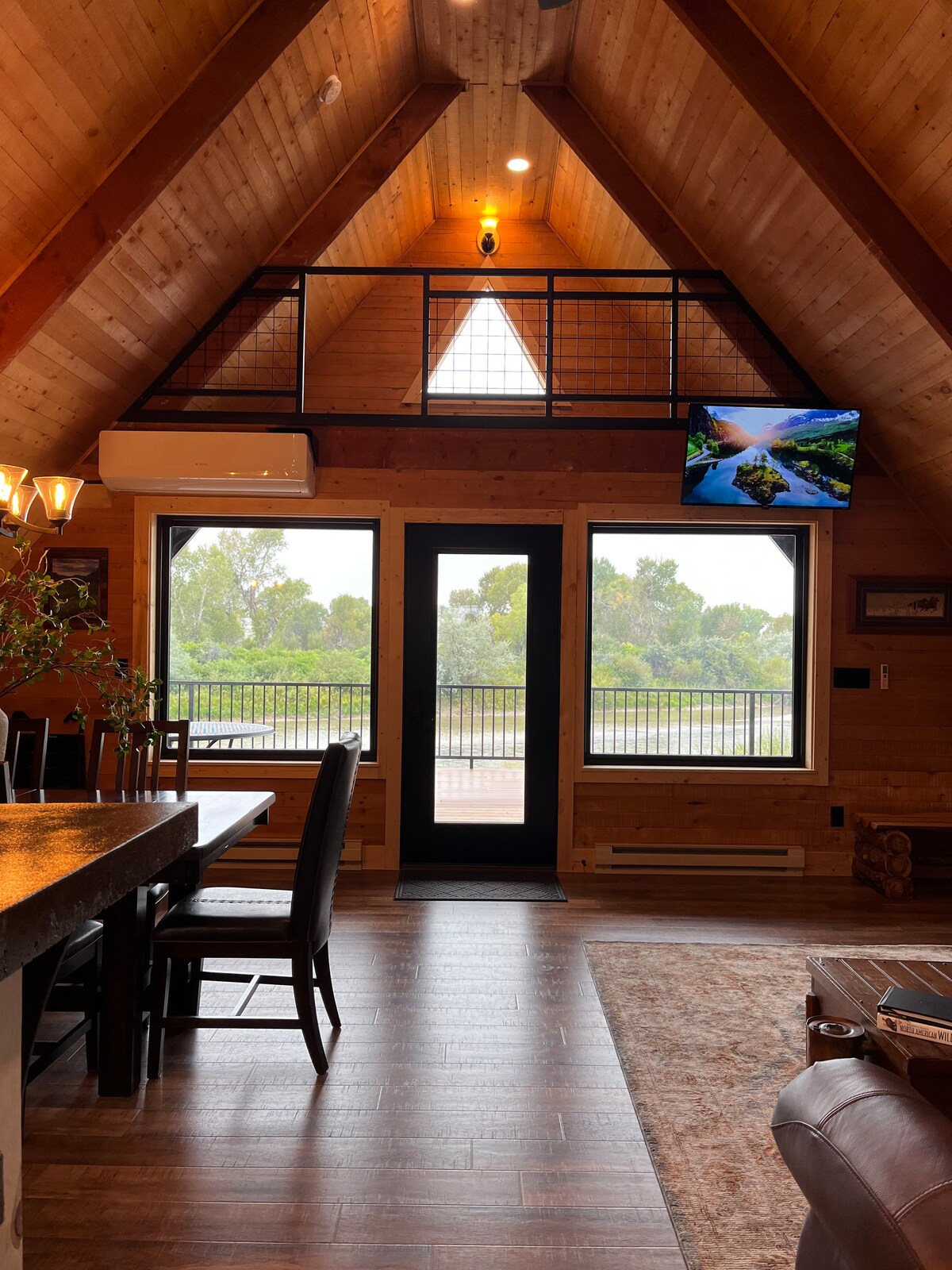 This newly remodeled second story cabin on Pine Creek is a sanctuary. The cabin has a nature inspired interior with a slate tile entry, wood floors and tongue and groove ceilings that give it a mountain modern feel. Enjoy watching abundant wildlife from every window and listening to the gentle stream while sitting in the private garden. This cabin is located close to downtown Pinedale and next door to hosts, yet it feels secluded. 78 scenic miles to downtown Jackson, WY.