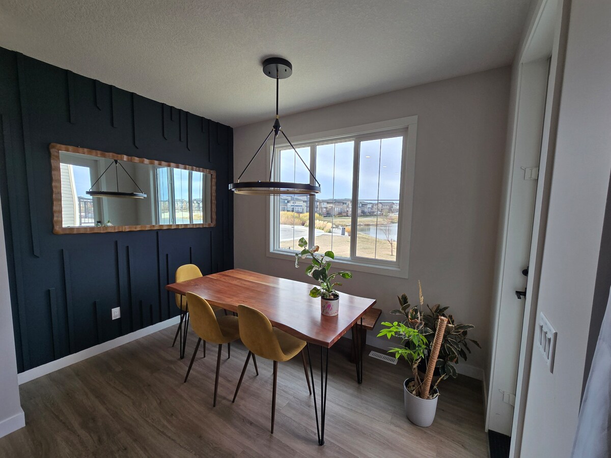 Welcome to the Chestermere Lake Oasis. Inside, you'll find six bedrooms (five fitted with plush king-sized beds), 3.5 bathrooms, and two fully equipped kitchens. Decorated with modern furnishings. Our home is sure to charm you. Outside, you can relax on our large deck with scenic views of a creek and beautiful greenery. Our home is a 25min drive from Downtown Calgary and the Airport, 5-10min drive from shops and restaurants, and just a short walk from a golf course and the lake.