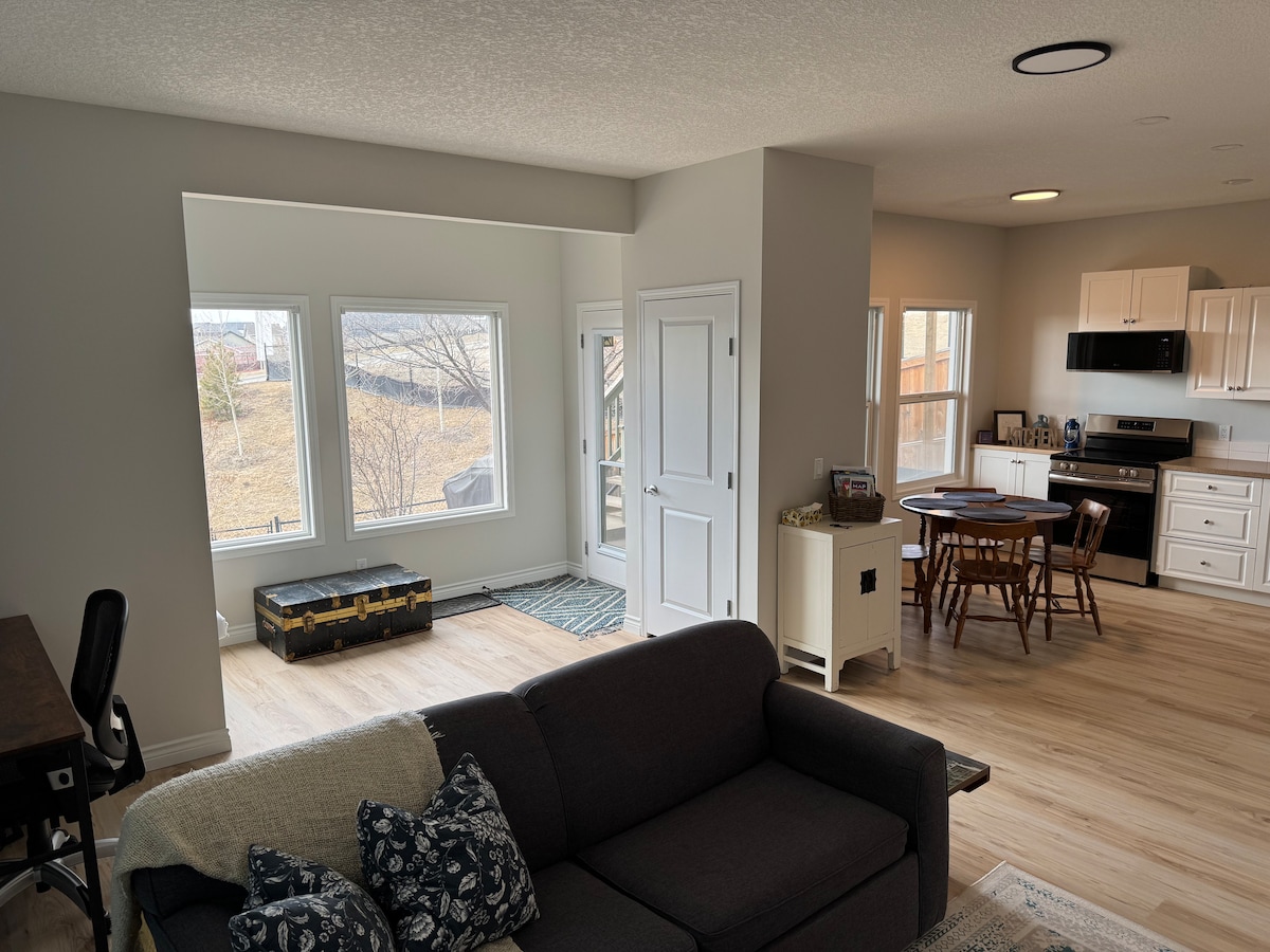 Fully furnished, boutique style suite. Situated in the quiet community of Sunset Ridge with lots of pathways, parks and small shopping area all within a short walking distance. Only 15 minutes from Calgary, 45 minutes to Banff. Decor of the unit is trendy and situated on the main floor so NO stairs. Parking is located at the side of our residence and you have access to the front patio for those warm evenings in the summer. Our family is fun and friendly.