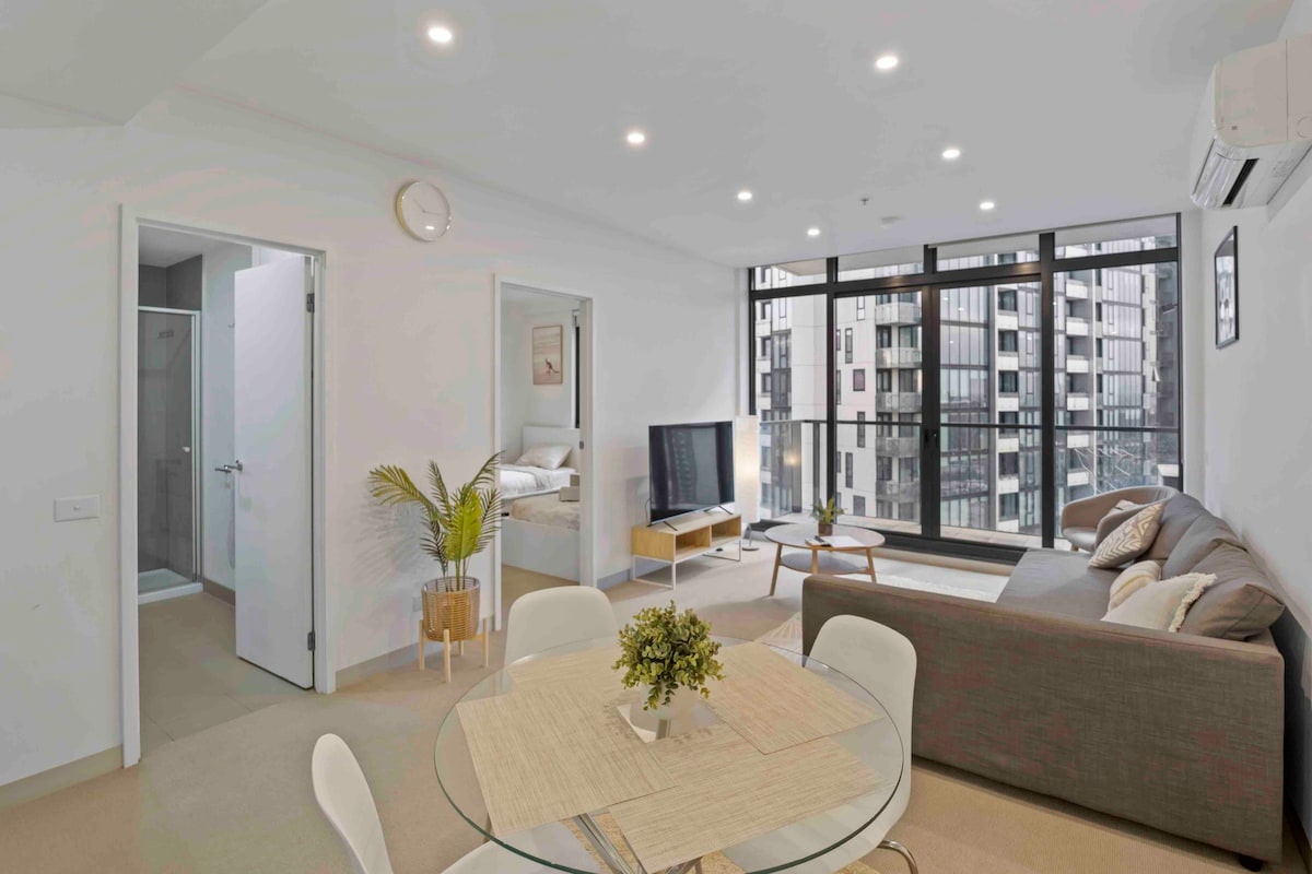 This place has a style all its own. Brand new complex featuring 12th floor entertaining area overlooking the MCG, Yarra River, and Melbourne skyline. This is a high quality 2 bedroom apartment suitable for executive stays or couples seeking convenience and proximity to Rod Laver Arena, MCG, Yarra River, restaurants and nightlife. Guests will be able to enjoy outdoor dining from the communal rooftop area, or just enjoy the superb views from the unit balcony. Gym and Spa facility also available
