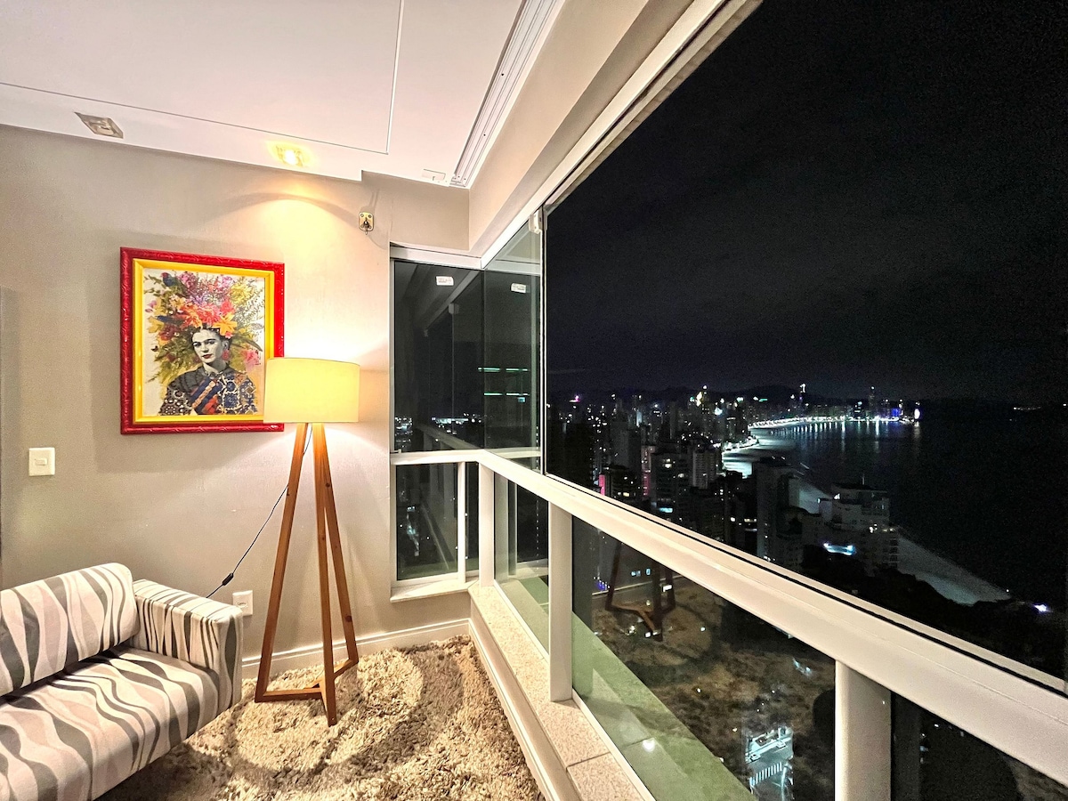 Um lindo apartamento apartamento com vista do mar de Balneário Camboriú , prédio este que é ponto de encontro para as pessoas tirarem fotos de toda a orla do mar. Recém reformado, acolhedor, estiloso, funcional e como já disse com uma vista de tirar o fôlego, bem de frente a famosa roda gigante. Ainda assim, o nosso condomínio oferece piscina aquecida, sauna, academia, espaço para festas, salão de jogos e até um mercadinho 24 horas. Você vai se surpreender com a estadia!