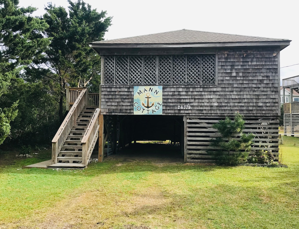 Welcome to the Mann Cottage in Salvo! A 2 bedroom, 1 bath, sleeps 4, one lot back from the National Seashore & a 2 minute walk to the Atlantic Ocean, Wi-fi, 3 USB ports in each room. Smart TV. Screened porch & sun deck. Hot/cold outside shower. Quiet neighborhood, pleasant for bicycling, walking, and jogging, easy connect to 4 mi. long village pathway. Salvo is conveniently located in the middle of Hatteras Island making day trips to other areas quicker & easier to accomplish.
