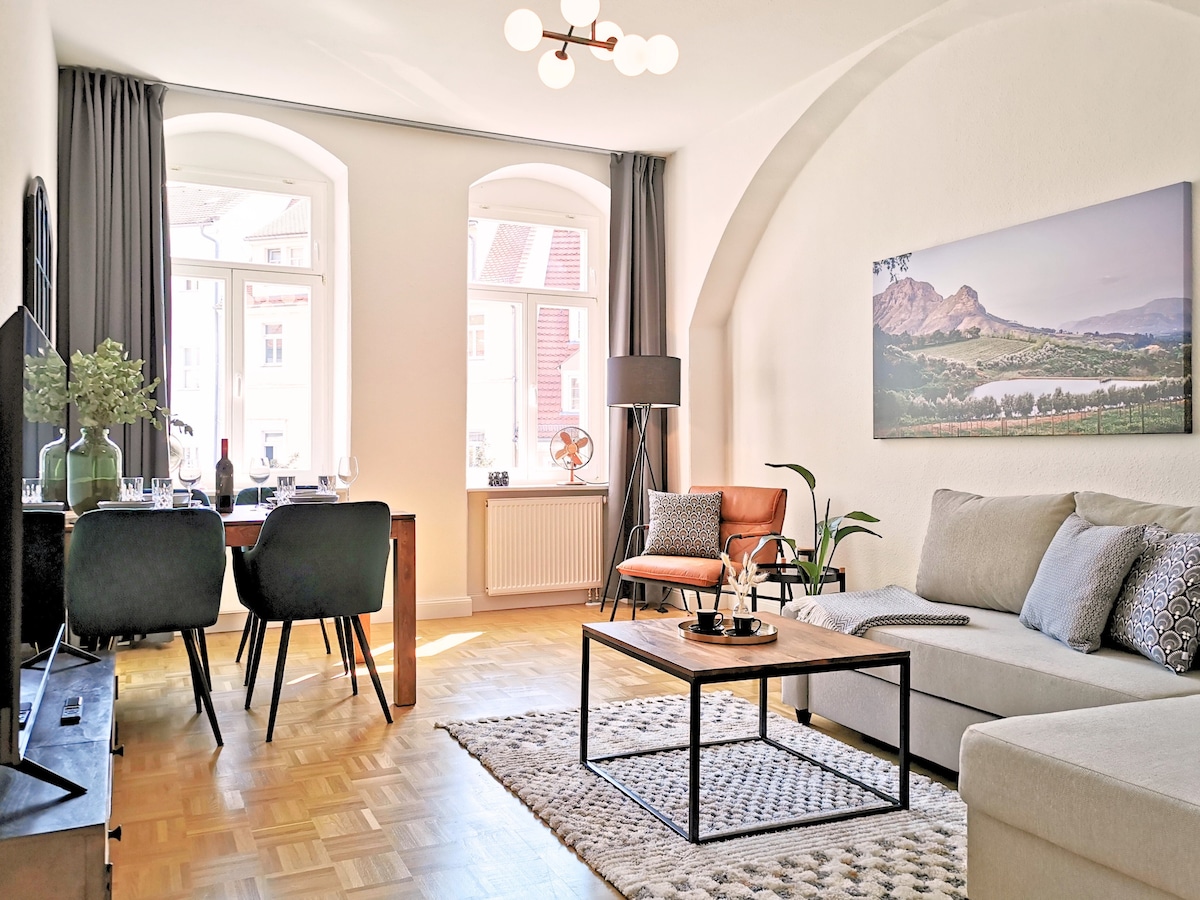 Willkommen im Fynbos Apartment "Bartinney" direkt am Theaterplatz in Meißen! Dein 62 m² Apartment mit historischem Flair mitten in der Altstadt verfügt über alles, was du für einen entspannten Aufenthalt brauchst: ✿ Kingsize Bett (1,80 x 2 m) ✿ 55" Smart-TV (für Netflix & Co.) ✿ NESPRESSO Kaffee & Teekollektion ✿ Voll ausgestattete Küche ✿ Eigener Parkplatz ✿ Begehbare Regenwald-Dusche ✿ Ausblick auf den Meißner Dom & das Theater ✿ Super zentral gelegen, mitten in historischer Altstadt