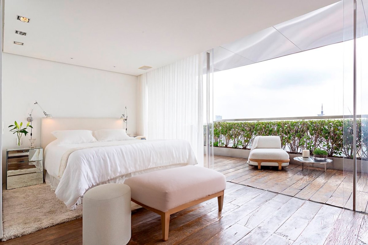 Estúdio espaçoso com muito design, arquitetura e a melhor vista de São Paulo. Loft completo! Com cama queen, closet, ar condicionado silencioso, cozinha completa, home office, WI-FI, TV 55” e uma belíssima banheira de imersão, de onde pode apreciar o seu drink preferido e curtir uma vista apaixonante. São Paulo toda estará há poucos minutos de você. Acesse o metrô andando apenas 200m. Reserve com tranquilidade! Proporcionaremos uma excelente hospedagem e uma ótima experiência!