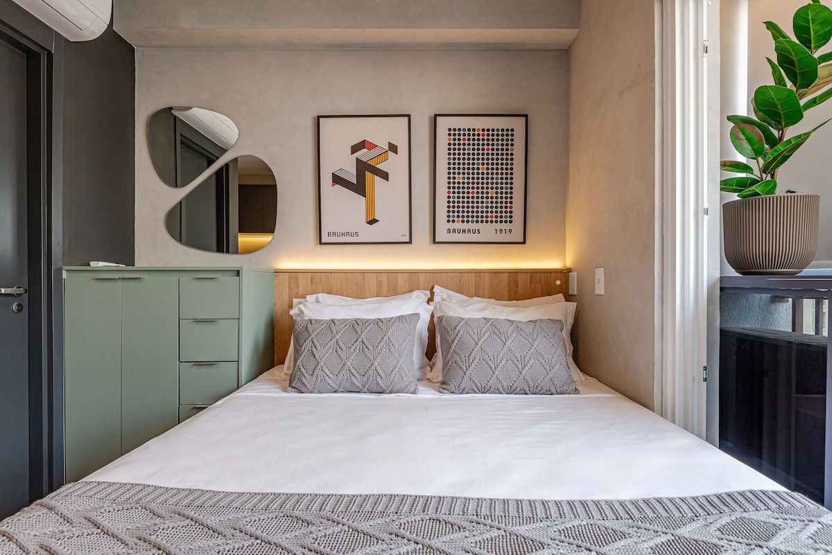 Se você gosta de luz natural, este estúdio na Vila Madalena é o lugar perfeito. Localizado no primeiro andar, em uma rua tranquila, a poucos passos de um lindo parque e de todos os bares, restaurantes, galerias de arte e música ao vivo que a Vila Madalena tem a oferecer. O estúdio possui cama de casal, armário, área de trabalho, TV de 43", Kitchenette, AC, e água quente no banheiro. O complexo de apartamentos possui piscina infinita, lavanderia, fogueira, recepção 24 horas e área comum.