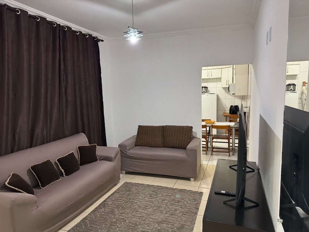 Studio de 40 m2 aconchegante com vista e localização privilegiada. Varanda com vidros e persianas blackout, sofá cama king, lençóis macios e cheirosos de 200 fios , secador de cabelos TAIFFY ,mesa, cadeiras e uma linda vista. Cozinha equipada: geladeira, forno elétrico, fogão, micro-ondas, cafeteira e liquidificador. Taças de espumante, vinho, água e cerveja .Pratos, xícaras, talheres e uma bancada para refeições. Smart TV, ar-condicionado, Wi-fi, vaga garagem e Self check-in😀
