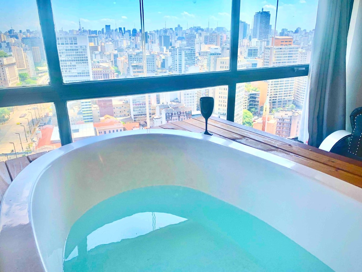 Mais uma experiência sensacional oferecida pela @oficina_estadia Já pensou em dormir dentro de uma Kombi real e desfrutar de uma banheira com água quentinha e vista privilegiada da cidade? Você estará a 150 metros de altura, no 40º andar de um prédio icônico, com a mesma vista do Sampa Sky! Da nossa janela panorâmica você contempla o prédio do Santander, vale do Anhangabaú e até a Avenida Paulista no horizonte. Venha conhecer e desfrutar! Para entrar mais cedo ou sair mais tarde, leia abaixo