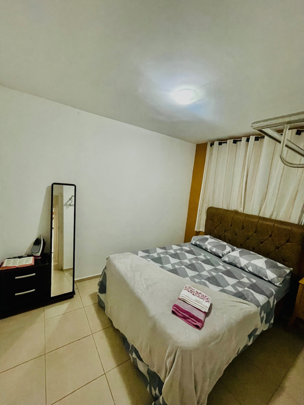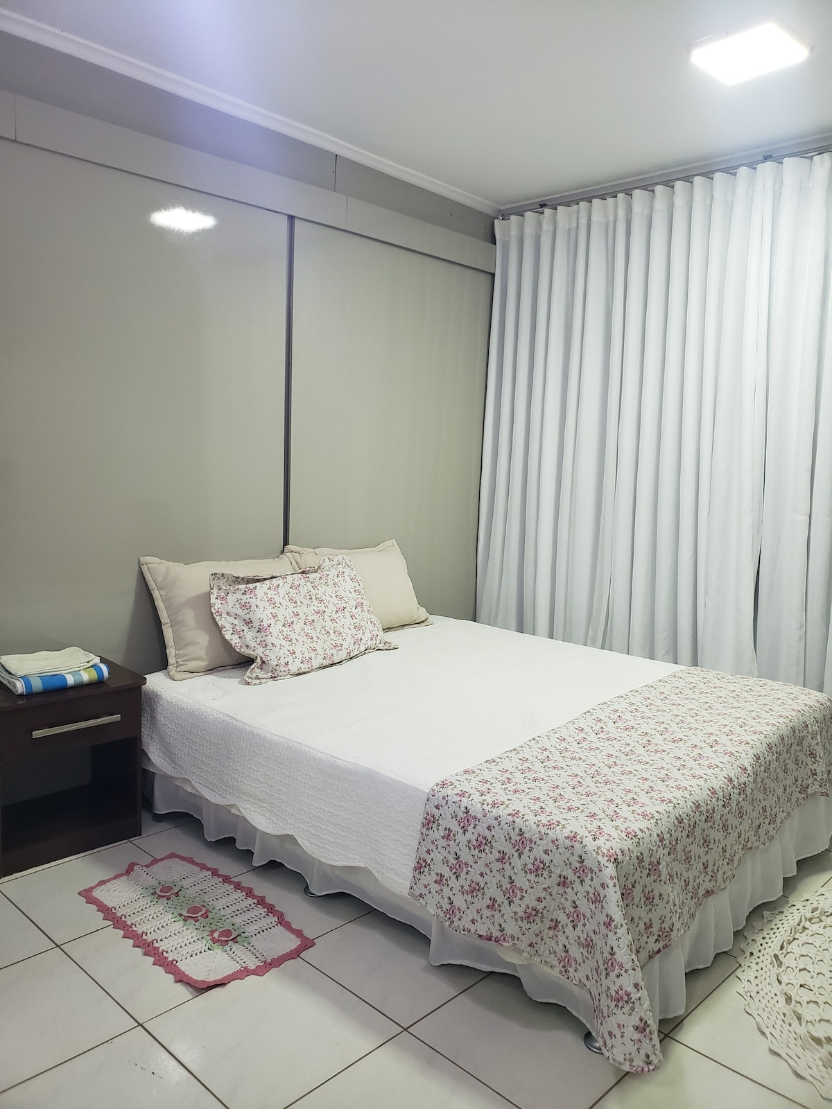 Relaxe nesta acomodação tranquila localizado perto de shopping, supermercados, padarias, restaurantes entre outros. Nas proximidades você encontra mais opções de comercio. Fica a 5 minutos do centro da cidade. Ambiente familiar, não sendo permitido barulhos, festas, e algazarras! APARTAMENTO DISPONÍVEL APENAS PARA 1 HÓSPEDE! Hospedagem segura, com alarme e câmeras de segurança na área EXTERNA do apartamento. Ar condicionado disponível no quarto!