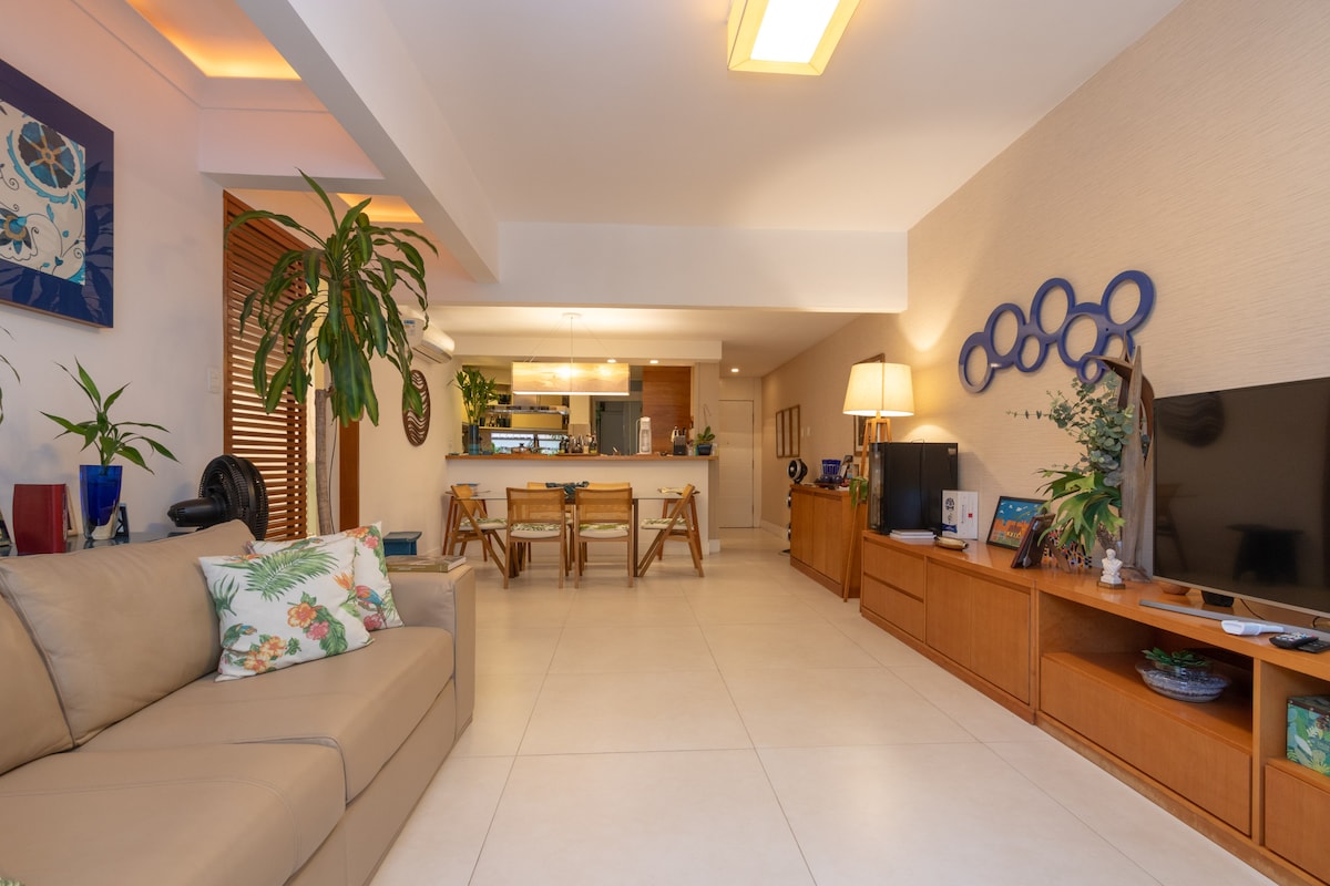 Charming 3-bedroom apartment with a glass-enclosed balcony in the heart of Leblon. Ideal for those seeking comfort, functionality, and a prime location. With 130 m² of well-designed living space, the apartment features 3 suites — one of which can be converted into a home office, already equipped with a sofa bed. The spacious living room is filled with natural light and opens onto a large balcony with a lush green view, creating a peaceful and inviting atmosphere.