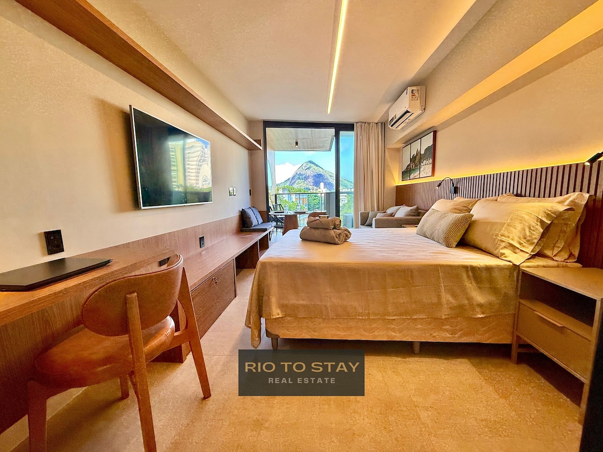 Breathtaking view from the rooftop pool. Fully renovated apartment: living room with a smart TV, sofa bed and dining table. Balcony with table and chairs. Air conditioned bedroom with a comfortable queen size bed, wardrobe and safe. 100% cotton sheets and quality towels. One block from the world famous Leblon beach. Surrounded by restaurants, bars, shops, grocery store, local juice stores and much more. Parking available. 24h reception. Gym and laundry service available in the building.