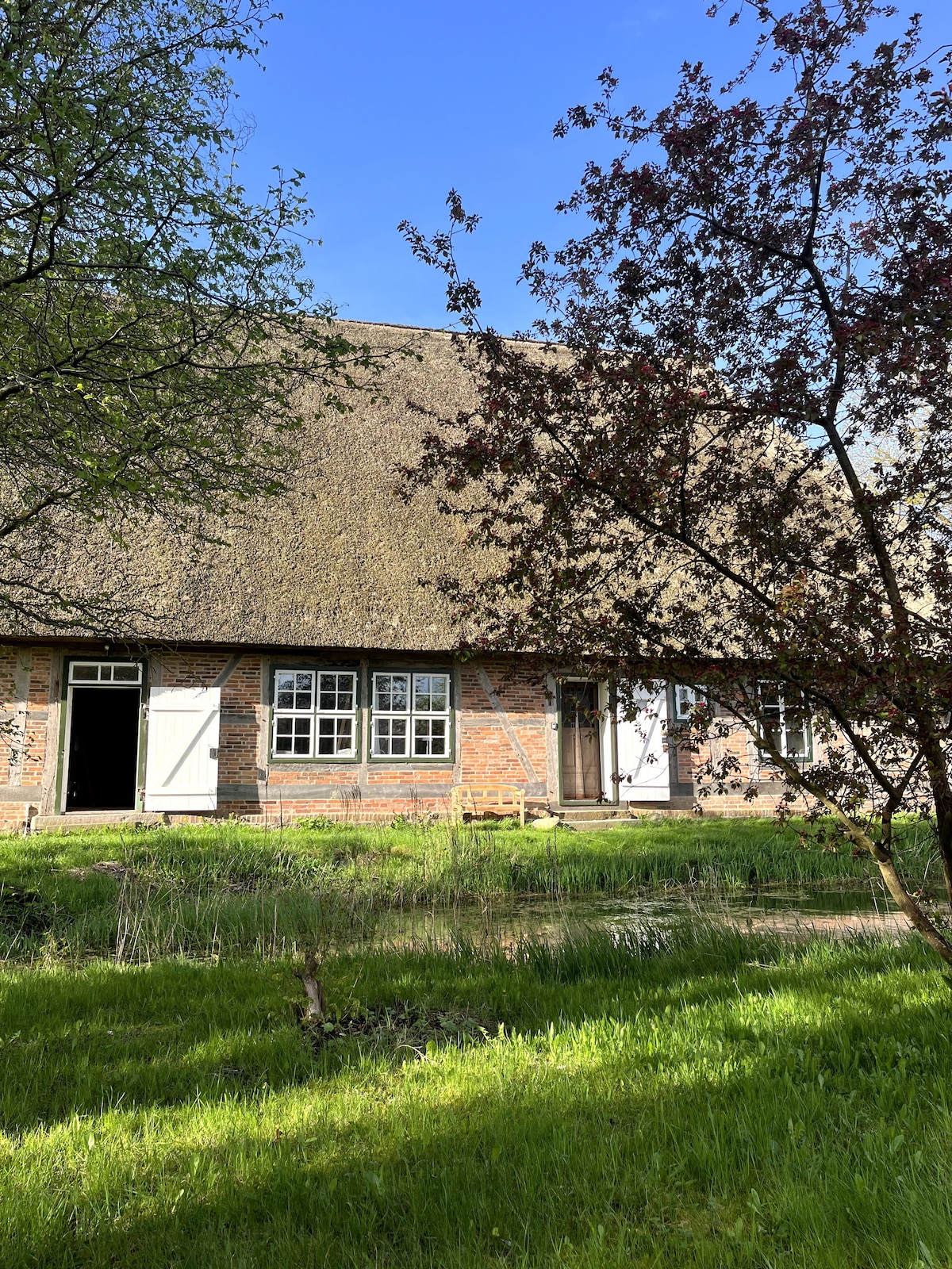Enjoy a peaceful, modern apartment inside a thatched-roof house, surrounded by quiet nature near Lübeck. Ideal for short stopovers, longer stays for workation or slow travel. You’ll love: • Absolute peace and untouched nature • Modern interior with historic charm • Dedicated workspace & reliable WiFi for remote work • Perfect location for day trips to Lübeck, Wismar, Schwerin and the Baltic Sea Whether you’re passing through or staying a while – this is a place to slow down and feel at home.